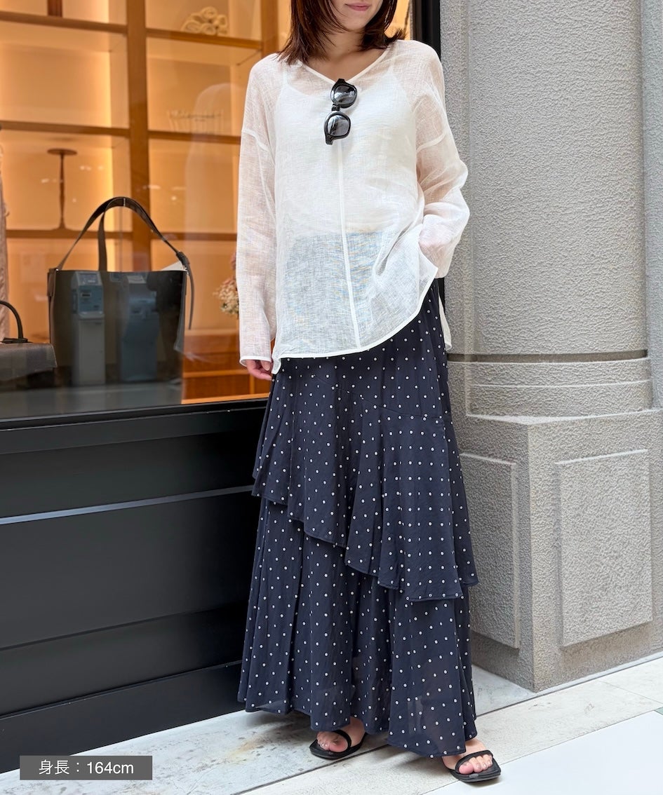 ラメドットプリントティアードロングスカート