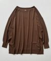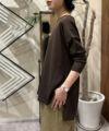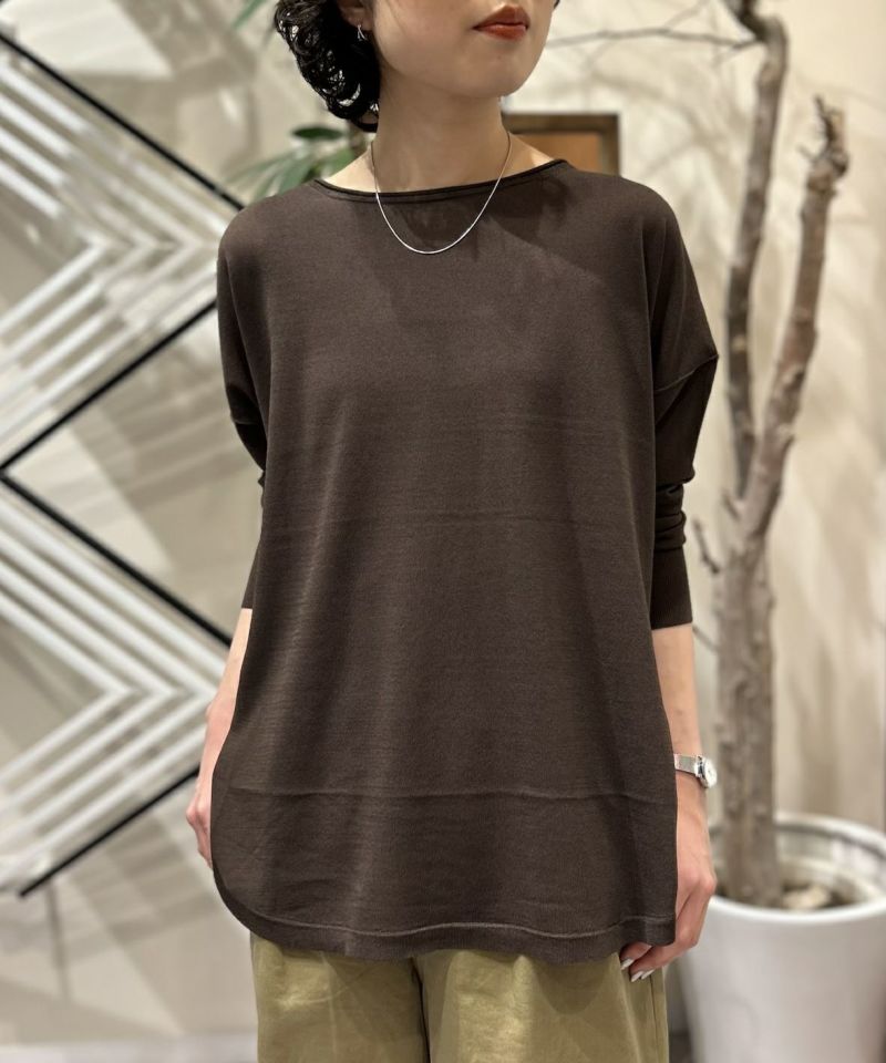 定番人気のストレッチサーブルの長袖プルオーバーニット。軽い着心地、さらりとした落ち感、ストレッチ性や綺麗な目面が魅力の素材。程良くリラックス感のあるシルエットながらスッキリとした上品な印象、裾のサイドスリットやバックスタイル首元のゴールドプレートがアクセントになっています。季節の変わり目にも重宝する一枚です。