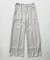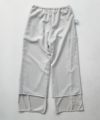 接触冷感・UVカット・防シワの夏に最適な機能性素材を使用したイージーパンツ。外側のサイドに縫い目の無い自然なフレアシルエット、とろみと落ち感のある上品な生地感が魅力。ウエスト部分は紐やタックを無くしスッキリとしたシンプルなデザイン。ウエストゴム仕様のイージーな履き心地ながら、きちんと感があり、Tシャツなどカジュアルなアイテム合わせも綺麗にまとめてくれる、上品な着こなしが叶うアイテムです。透け防止の裏地は暑い日にも着用可能な薄手のさらりとした素材です。※着丈の異なる2サイズ展開で、身長や好みに合わせて着用していただけます。同素材のトップス(品番:3050-MNWJJ15647A)とセットアップでの着用も可能です。※オイスター・ブラック共に裏地付き、ポケット付き。
