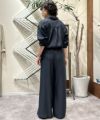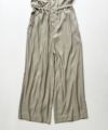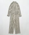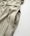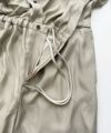 上品な光沢感、滑らかで落ち感のあるキュプラ混素材を使用したジャンプスーツ。ゆるさのあるメンズライクなデザインとと綺麗見えする素材感がマッチしたアイテム。ウエストゴム使用、内側にドロストの紐付きでサイズの調節が可能。袖を通さずに腰巻きにしたり、胸元でビスチェのように巻いたり、お好きな着こなしが楽しめる一枚です。※パンツ部分のみ裏地付き、ポケット付き。