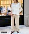 リネンライクなナチュラルでシアー感のある素材を使用したシャツ。さらりと軽い着心地で、暑い季節の羽織にもおすすめ。 程良くゆとりのあるサイジング、前後差のある着丈やサイドスリットが、女性らしくリラクシーな着こなしが楽しめます。