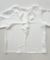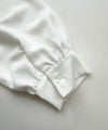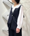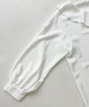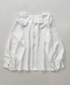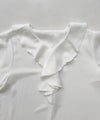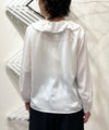 胸元から襟まで続くフリルデザインが華やかな印象のブラウス。軽やかな素材感、ストレッチ性のある生地でジャケットのインナーにも着回ししやすい一枚です。