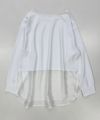 ウエストから裾にかけて切り替えた、シアー素材がアクセントになったプルオーバー。見頃は綺麗見えする薄過ぎないジョーゼット素材を使用し、ブラウス感覚でも、カットソー感覚でも着用できる着回しの効く一枚。裾のラウンドデザインが女性らしく、インナーとしても活躍します。
