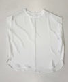 ブラウス見えするジョーゼット素材を使用したフレンチスリーブカットソー。ブラウスのような落ち感、適度な膨らみで綺麗見えする雰囲気を与えつつも、さらりとTシャツ感覚で気軽に着用できるアイテム。ラウンドになった裾のライン、腕を綺麗に見せてくれる袖のタックデザインもポイントです。