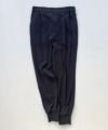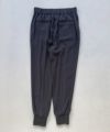 上品で落ち感のあるアセテート素材を使用したジョガーパンツ。腰回りにタックの無いスッキリとしたシルエットとセンタープレス入りで綺麗に着こなせる大人なアイテム。ボリュームのあるトップスやシャツと高相性です。※裏地無し、ポケット付き、ウエストゴム仕様。