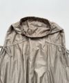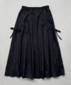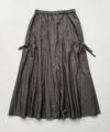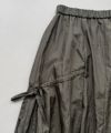 ヴィンテージライクなシワ感とハリ、上品な光沢感が魅力のナイロンタフタ素材のスカート。両サイドに施された紐を絞ってギャザーの調整が可能。シンプルなTシャツ合わせもサマになるアイテム。軽い着用感、ゴム仕様のウエストで履き心地も快適です。※裏地有り。