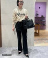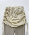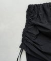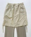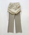 スカートを重ね着したようなデザインが新鮮なフレアパンツ。程良くタイトなセミフレアシルエットが脚を綺麗に見せてくれる。サイドの紐でシルエットのアレンジが可能です。※ウエストゴム仕様、裏地無し、伸縮性有り。