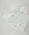 シアー感のある天竺素材を使用したフード付きのジップパーカー。光沢を抑えた綿混素材でカジュアルに薄手のシャツ感覚で羽織りやすく、これからの季節の日除けや冷房対策にもおすすめなアイテムです。フロントのファスナー部分や裾、袖口、バックスタイルに施されたニットリブ使いがアクセントになっています。※サイドポケット付き。