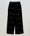 上品なベロア素材に鮮やかなイエローの小花刺繍が施されたトレンド感のあるパンツ。ウエストゴム仕様、伸縮性のある生地でイージーな履き心地。カラーニットや毛足の長いニット合わせで旬な着こなしが楽しめる一枚です。※裏地付き、サイドポケット付き。