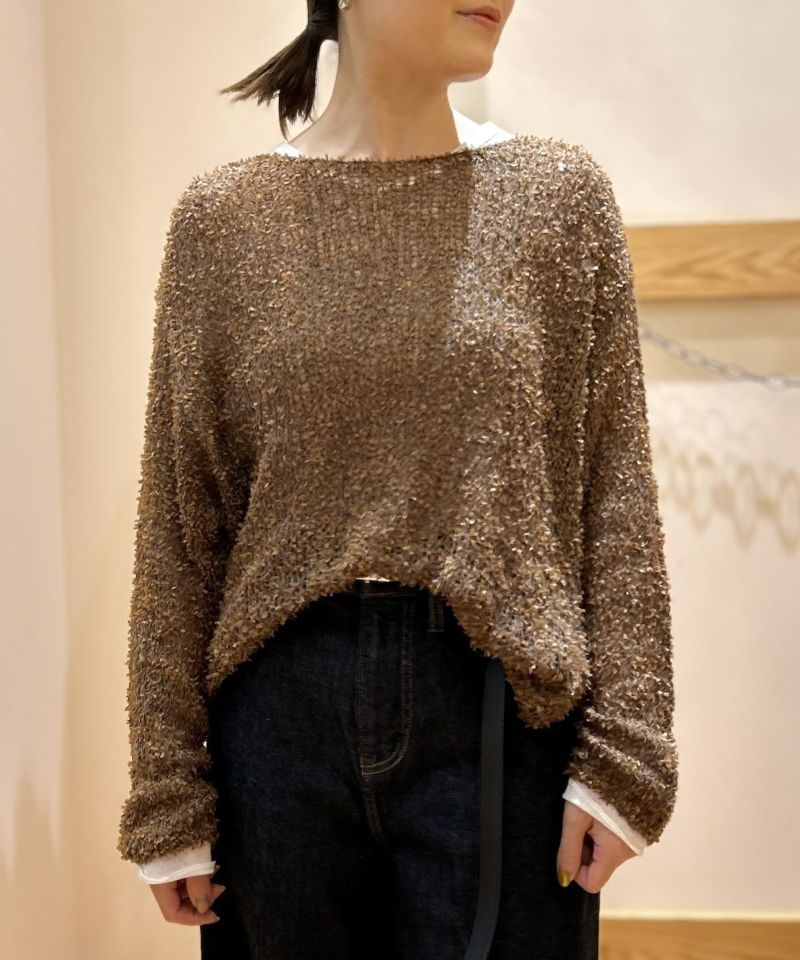 ふんわりとした独特なミックス感が特徴のフラッグヤーンを使用したメッシュ編みのニットプルオーバー。表面感のある素材が際立つ、スッキリとしたシンプルなシルエット。肌触りが良く、軽い着心地も魅力です。