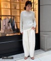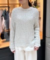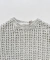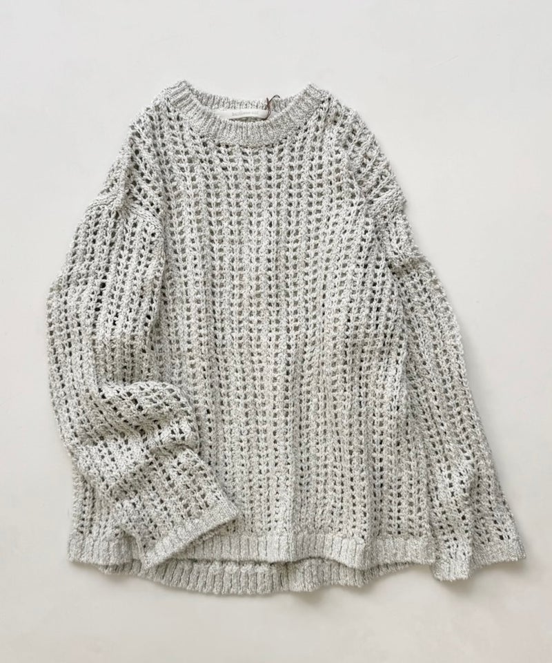 コットンとポリエステル素材を使用した、今から春まで着用可能なトレンド感のあるメッシュ編みニット。凹凸のある表面感とミックス感がポイント。エクリュカラーのみラメ糸が混紡されています。