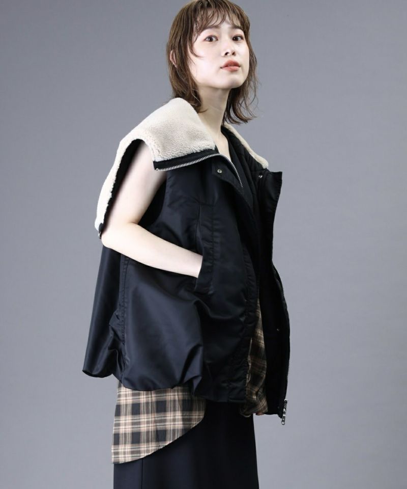 Munich ナイロンツイル×シープボアバルーンフライトベスト