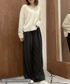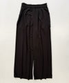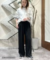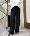 上質でマットな質感が特徴のストレッチポンチ素材を使用したワイドパンツ。シワにならない光沢を抑えた綺麗見えする表面感ながら、カットソーのような伸縮性があり、軽くさらりとした快適な着心地。レッグラインには程良い膨らみがあり、カジュアルにも綺麗目にも合わせやすい。※裏地無し、ポケット付き、バックウエストゴム仕様、サイドファスナー付き。