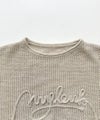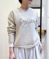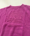 膨らみのあるモヘア混糸で編み上げられたニットプルオーバー。トレンド感のあるメッシュ編みに、同素材でデザインされた胸元のコード刺繍のロゴが目をひくアイテムです。