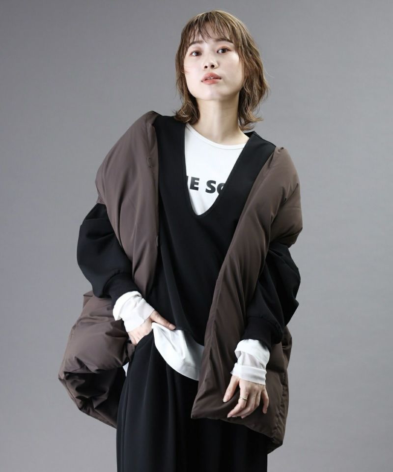 程良くコシのある綺麗見えする素材を使用したプルオーバー。深めのVネックがポイントになった、レイヤードスタイルが楽しめる一枚。丸みとゆとりのあるシルエットが女性らしく、袖口のリブ、裾と襟元のパイピングがアクセントになっています。同素材のパンツ(品番:710-504364)とセットアップでの着用も可能です。