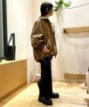 マットで程良くハリのある素材を使用したブルゾン。リラクシーで程良いゆとりとボリューム感のあるシルエット。着た時の立体感のあるフォルムが魅力的。高めに設定されたリブ仕様の襟や袖口のリブがアクセントになっています。見頃の内側は温かみのあるフリース生地になっていて、防寒対策としても活躍するアイテム。裾のコードを絞ってシルエットの調節が可能です。※ポケット付き、裏地付き、ダブルファスナー仕様。