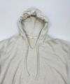 フードから続くスッキリと開いた襟元に、リラックス感のあるオーバーシルエットが可愛い、マレットメットオリジナルのメキシカンパーカー。襟元の紐や、フロントのカンガルーポケット、前後差のある着丈など細部までこだわった一枚。国内の生地を採用し、旧式の編み機で編み立てられた「AZUMA裏毛」を使用。時間をかけてゆっくりと編み立てられているため、通常の編み機では表現できないふっくら感と柔らかさのある素材感が特徴。リラクシーなアイテムながら、質の良い裏毛素材で、だらしなく見えず、大人のカジュアルスタイルにお勧めなアイテムです。チャコールグレーとナチュラル色のみ同素材のスカート(品番:3050-MNWSK23117)とセットアップでの着用も可能です。