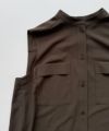 軽量・伸縮性・イージーケアなど暑い季節にに嬉しい特徴を持つジョーゼット素材のノルディスを使用したノースリーブブラウス。肩部分に深めに施されたタック使いで着るだけで立体感のあるシルエットに。胸元のポケットや前後差のある着丈、サイドスリットなどディテールの効いた一枚。楽ちんな着心地ながら、素材の持つ程良い膨らみと落ち感で綺麗見えが叶うアイテムです。同素材を使用したパンツ(品番:371-535620)、スカート(品番:371-535619)、トップス(品番:3371-535917)もご用意しております。セットアップでの着用も可能です。