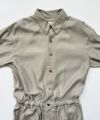 上品な光沢感、滑らかで落ち感のあるキュプラ混素材を使用したジャンプスーツ。ゆるさのあるメンズライクなデザインとと綺麗見えする素材感がマッチしたアイテム。ウエストゴム使用、内側にドロストの紐付きでサイズの調節が可能。袖を通さずに腰巻きにしたり、胸元でビスチェのように巻いたり、お好きな着こなしが楽しめる一枚です。※パンツ部分のみ裏地付き、ポケット付き。