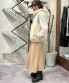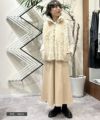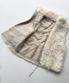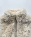 肌触りの良いふわふわのエコファー素材を使用したスタンドカラーのベスト。毛足の長さの異なるエコファーをミックスしたデザイン。シンプルなスタイリングに一枚取り入れるだけで華やかな印象に。ジップ部分の長めのリボンもアクセントになっています。裾のコードを絞ってシルエットの調節が可能です。※フロントジップ付き、裏地付き、ポケット付き。