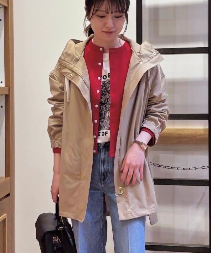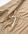 程良いハリ感があり、シワになりにくく、軽量で縦にも横にもストレッチ性があるサーブルクロス素材を使用したマウンテンパーカー。撥水加工が施されているのもポイント。安心感のあるミドル丈に、ゆとりのあるサイジングで、インナーを選ばずに気軽に着用可能。カジュアルなアイテムながら光沢を抑えた素材感でスポーティーになり過ぎず、大人の女性が安心して着用できるアイテム。袖部分がゴム仕様になっており袖を上げた着こなしや、バックスタイルのウエスト内側の紐を絞ってシルエットの変化が楽しめます。前後差のある着丈に深めのサイドスリット、フード部分の太めの紐もアクセントになっています。※裏地無し、サイドポケット付き。