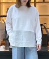 ウエストから裾にかけて切り替えた、シアー素材がアクセントになったプルオーバー。見頃は綺麗見えする薄過ぎないジョーゼット素材を使用し、ブラウス感覚でも、カットソー感覚でも着用できる着回しの効く一枚。裾のラウンドデザインが女性らしく、インナーとしても活躍します。