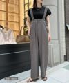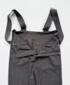 リネンツイード風の綺麗見えする素材を使用したサス付きワイドパンツ。ウエスト部分に少しゆとりのあるリラックス感のあるシルエットに、太めの肩紐がクラシカルな雰囲気。肩紐部分で着丈の調節が可能。カジュアルにも綺麗めにも着用できるアイテムです。※ポケット付き、裏地無し、フロントファスナー付き。