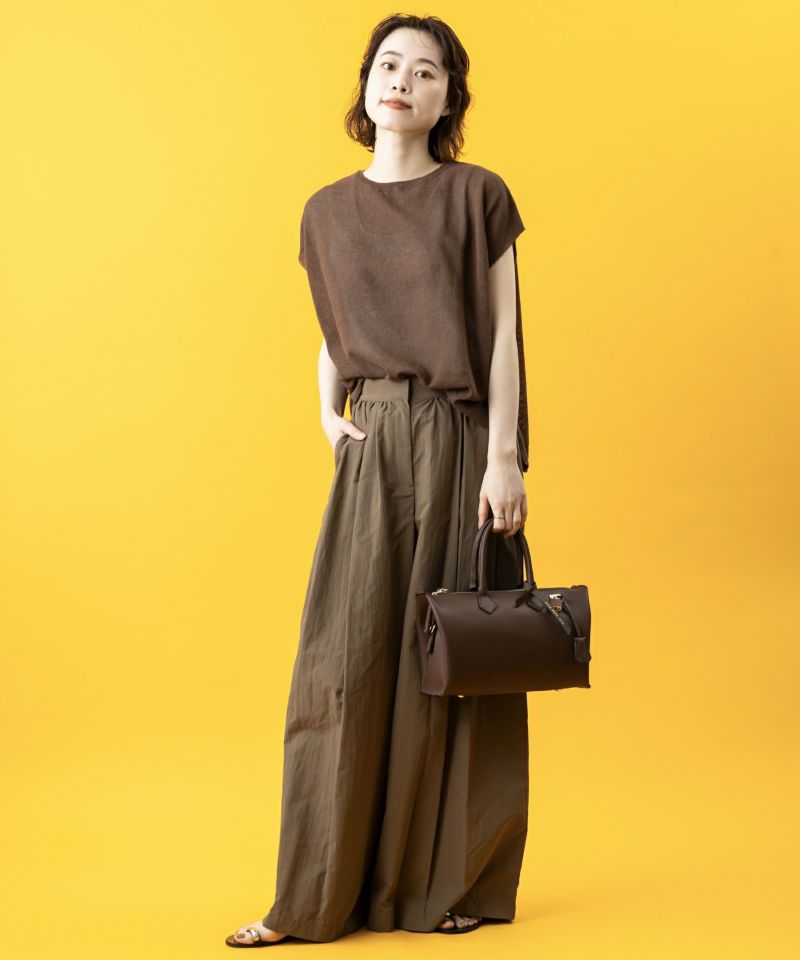 存在感のあるマレットメットオリジナルのスーパーワイドパンツ。再生されたナイロンを使用したサスティナブルな素材。軽量でマットな見た目、ワッシャー加工によるリラックス感があり、タスラン糸によるドライなコットンタッチ、ナイロン特有のソフトな風合いも兼ね備えた、おすすめ素材。Tシャツなどシンプルなトップスが映えるアイテム。軽い着心地、バックウエストゴムのイージーな履き心地も魅力です。※裏地無し、ポケット付き。