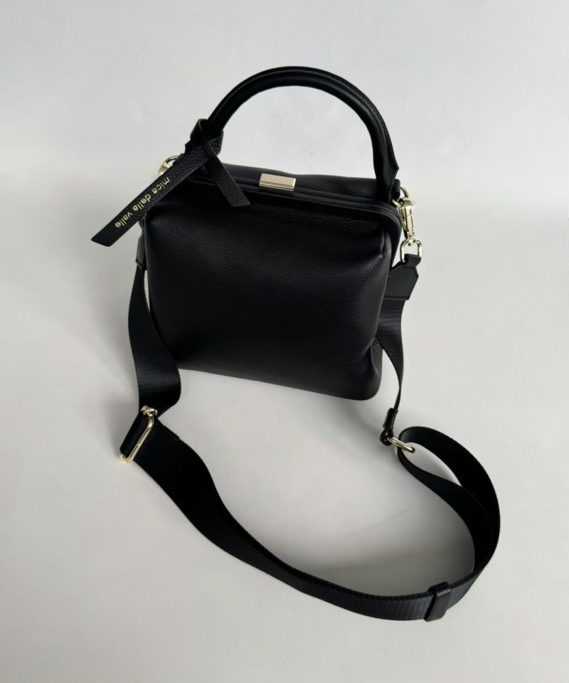 商品名のcubetto(キュベット)はイタリア語で小さいキューブの意味。その名の通り、コロンとした立方体に近い形のガマ口バッグ。大きく口が開く出し入れのしやすさと、カチッと閉まる防犯面での安心感があります。取り外し可能なショルダーストラップは斜めがけまで長さ調節が可能。本体にはふんわりと軽いゴートレザーを使用。しっかりと厚みがあるのに軽い仕上がりになっています。外ポケット1つ、内ポケット1つ付き。外ポケット1つ、内ポケット1つ付き。※重さ:0.51kg、ストラップ長さ:82.5〜128.5cm。【mica della valle】(ミカデラヴァッレ)は2018年に誕生したバッグブランド。デザイナーの中谷美香は空間デザインを学び、その後ハンドバッグデザイナーとしてのキャリアをスタート。ブランド名の”mica della valle”はデザイナーの名前をイタリア語に変換したワードに由来。素材へのリスペクトと愛情、持ち手である女性への想いを原点に物づくりをし、気に入った素材をじっくりと手で触りながら試行錯誤、その素材の良さが引き立つ造形を見つけて行く過程がブランドの要となっている。加えて、道具として女性の日常を助ける機能性、軽さや耐久性を兼ね備えたバッグであることを大切にしている。深みとユーモアのある大人の女性たちに寄り添うユニークで美しいファッションアイテムになってくれること、物づくりへ込めた思いが手から手へバッグを通して伝わって行くことを期待している。