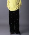 上品なベロア素材に鮮やかなイエローの小花刺繍が施されたトレンド感のあるパンツ。ウエストゴム仕様、伸縮性のある生地でイージーな履き心地。カラーニットや毛足の長いニット合わせで旬な着こなしが楽しめる一枚です。※裏地付き、サイドポケット付き。