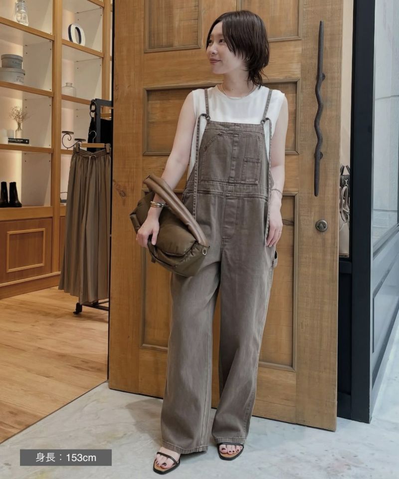ヴィンテージ感のある加工や、カラーリングがオシャレなデニムサロペット。細めの肩紐や太過ぎないシルエットが大人っぽいポイント。肩紐で着丈の調節が可能です。