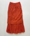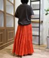 透け感のあるインドコットンボイル素材を使用したロングスカート。5段ティアードデザインで、生地を贅沢に使用したエアリーなアイテム。クリンクル加工が施され、ナチュラルなシワやうねりなどの表面感や、広がり過ぎないシルエット、動いた時の揺れる裾のラインが魅力。裏地にも共布を使用し、吸水・速乾性に優れた暑い季節に嬉しい素材感もポイント。※ウエストゴム仕様・紐付き、サイドポケット付き、裏地付き。