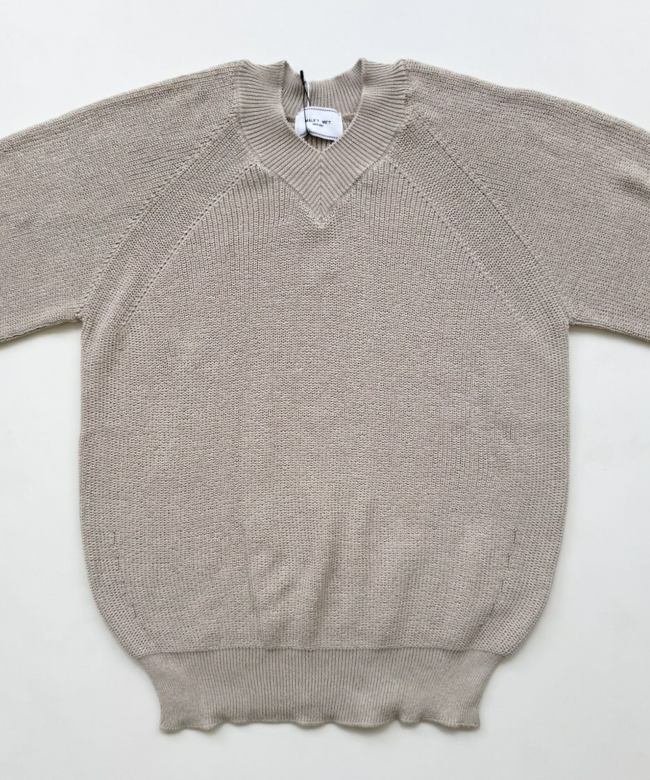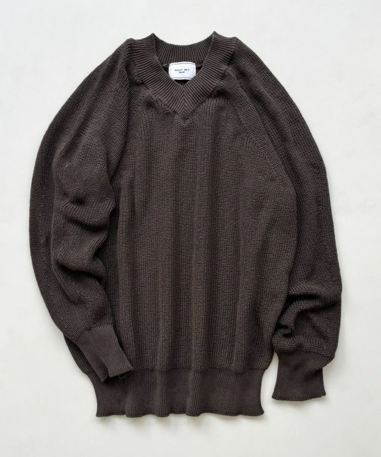 Vネック畦ニット