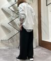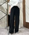 上質でマットな質感が特徴のストレッチポンチ素材を使用したワイドパンツ。シワにならない光沢を抑えた綺麗見えする表面感ながら、カットソーのような伸縮性があり、軽くさらりとした快適な着心地。レッグラインには程良い膨らみがあり、カジュアルにも綺麗目にも合わせやすい。※裏地無し、ポケット付き、バックウエストゴム仕様、サイドファスナー付き。