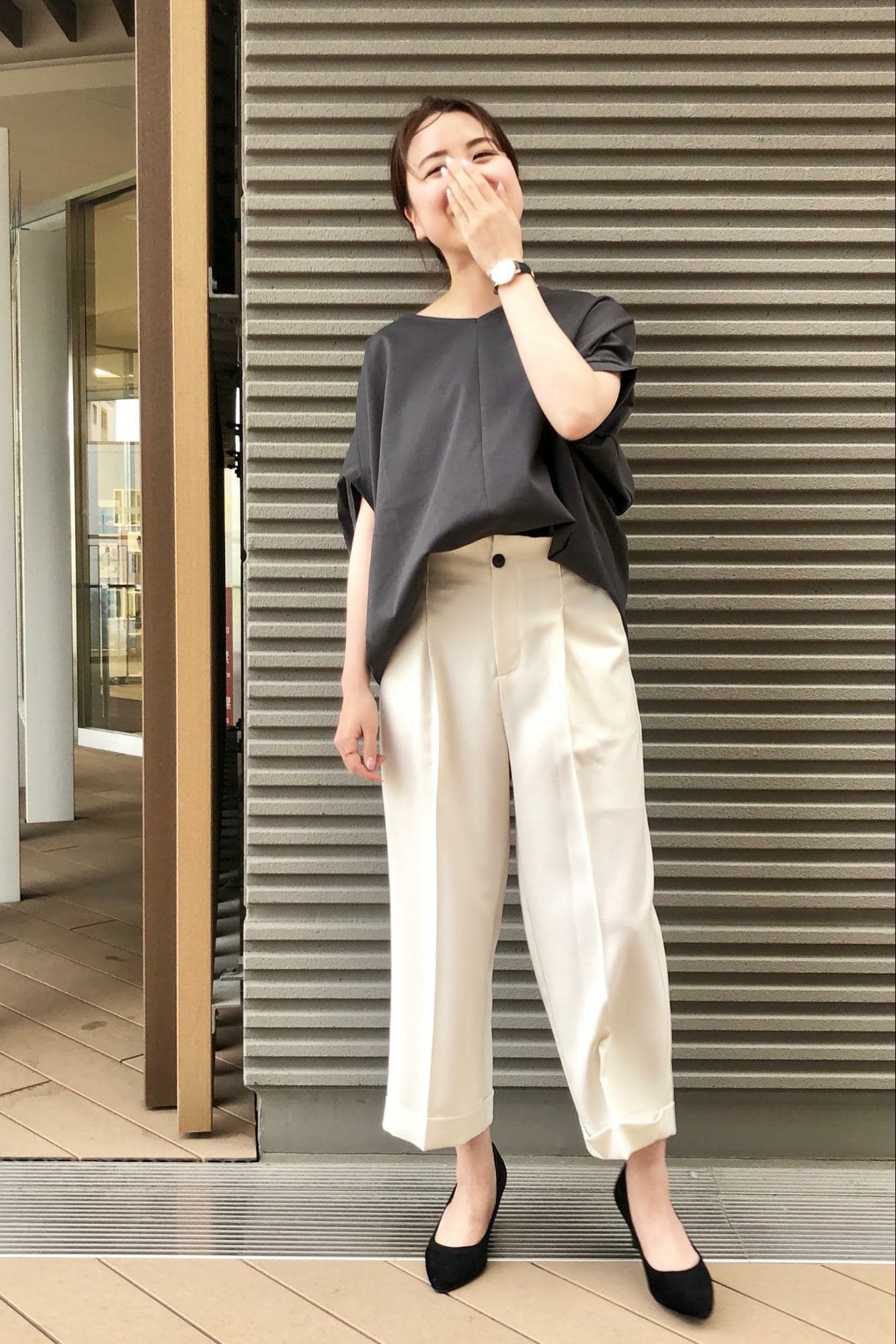一枚で程よくゆるく、きちんと感もキープできるマレットオリジナルバンザイカットソーはおすすめ!ホワイトパンツで女性らしくコーデしました。