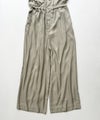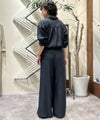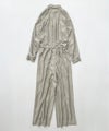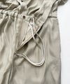上品な光沢感、滑らかで落ち感のあるキュプラ混素材を使用したジャンプスーツ。ゆるさのあるメンズライクなデザインとと綺麗見えする素材感がマッチしたアイテム。ウエストゴム使用、内側にドロストの紐付きでサイズの調節が可能。袖を通さずに腰巻きにしたり、胸元でビスチェのように巻いたり、お好きな着こなしが楽しめる一枚です。※パンツ部分のみ裏地付き、ポケット付き。