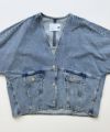 丸みのあるシルエットと短めの着丈が可愛らしい、デニムジャケット。厚すぎない程良い生地感で、シャツ感覚で着用可能。スッキリと開いたVネックデザイン、袖口のリブ使いや、低めのポケットやステッチ位置など、ディテールの効いた一枚です。