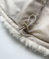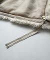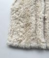 肌触りの良いふわふわのエコファー素材を使用したスタンドカラーのベスト。毛足の長さの異なるエコファーをミックスしたデザイン。シンプルなスタイリングに一枚取り入れるだけで華やかな印象に。ジップ部分の長めのリボンもアクセントになっています。裾のコードを絞ってシルエットの調節が可能です。※フロントジップ付き、裏地付き、ポケット付き。