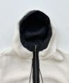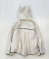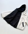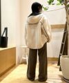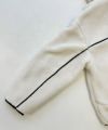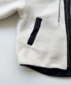 短毛のモコモコのボア素材を全体に使用したフード付きブルゾン。バックスタイルや袖、襟元やフード内、ジップ部分やポケット部分などのパイピングやタフタ素材の切り替えがアクセントにに。やや前後差のある着丈と自然な丸みを帯びたシルエットも魅力的。ゆとりのある袖のデザインで、袖通しも良く、実用性も兼ね備えたアイテムです。