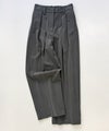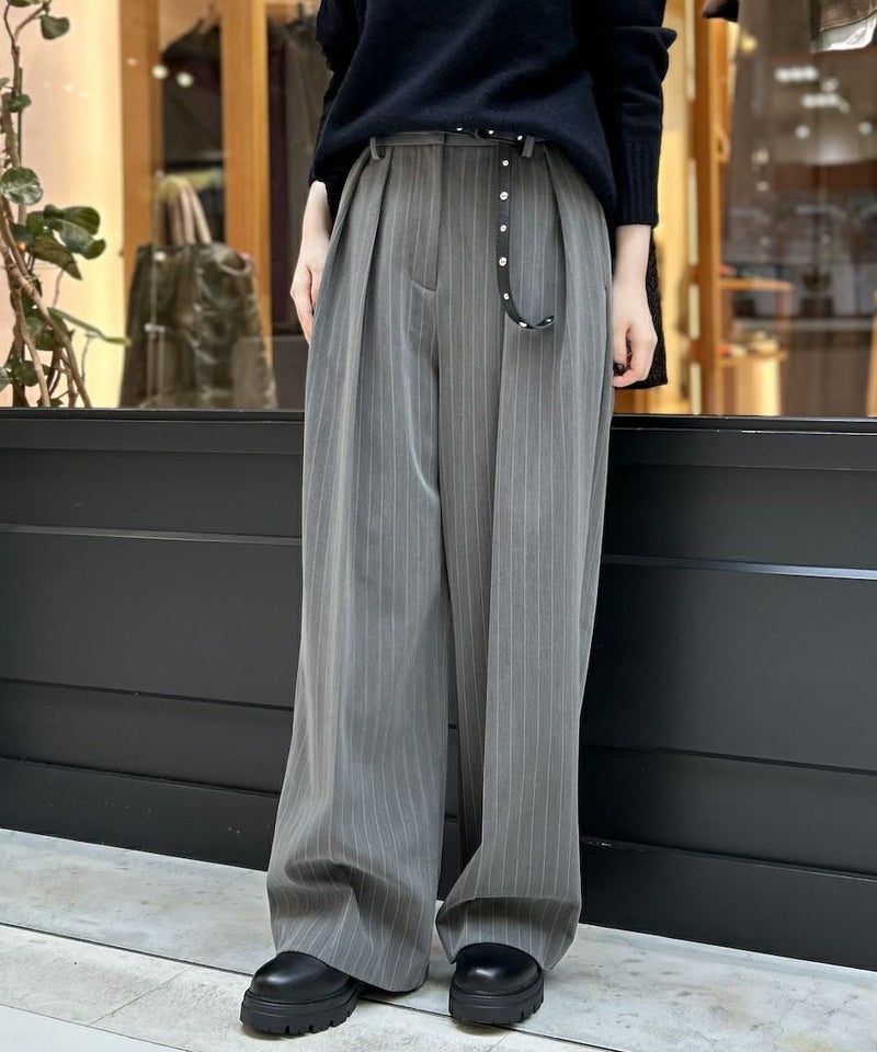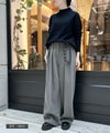 表面はスッキリとした綺麗見えするTR生地、裏は温かく肌触りの良い裏起毛素材を使用したワイドパンツ。ウエスト部分のタックが効いた程良いワイドシルエット。チャコールグレーとブラックは無地、グレーはストライプ柄です。※バックウエストゴム、サイドポケット付き、バックポケット付き。