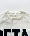肌触りの良いモール糸を使用したニットプルオーバー。編み立てられた胸元の大きめのロゴデザインが目を惹くアイテムです。