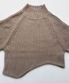 レイヤードスタイルにオススメなクロップド丈のハイネックリブニット。アシンメトリーな裾のラインがポイントです。