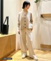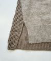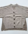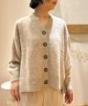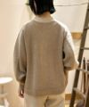軽くて温かく、ふわふわとした表面感が魅力のラクーン混素材を使用したカーディガン。バックスタイルの凹凸のある編地切り替えがアクセントになったアイテムです。