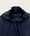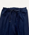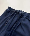 程良いコシはありつつ、柔らかくストレッチ性のある素材を使用した、ウエストゴム仕様のイージーデニム。冬らしい濃色のカラーに、ウエスト部分のタック使いがポイントになったアイテム。※裏地無し、サイドポケット付き。
