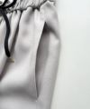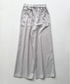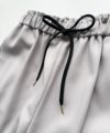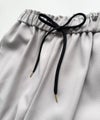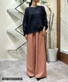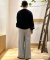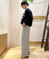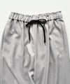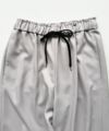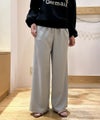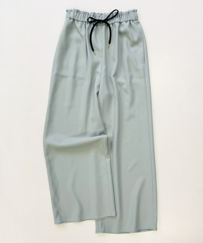 程良い温かみと膨らみのあるウールライク素材を使用したワイドーパンツ。ウエストゴム仕様のイージーな履き心地。ウエスト部分の配色になったブラックの紐がアクセントになっています。※バックポケット付き、サイドポケット付き、裏地無し。