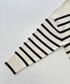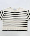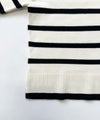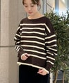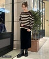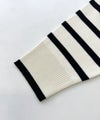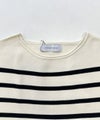 肌触りの良いノンウール素材を使用した、SUGAR ROSE 定番人気のボーダーニットプルオーバー。いつものボーダーよりも幅を狭くし、大人っぽい雰囲気に。程良く肉感のあるダブルジャガードニット。襟元のデザインがさり気なくアクセントになっています。