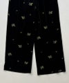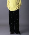 上品なベロア素材に鮮やかなイエローの小花刺繍が施されたトレンド感のあるパンツ。ウエストゴム仕様、伸縮性のある生地でイージーな履き心地。カラーニットや毛足の長いニット合わせで旬な着こなしが楽しめる一枚です。※裏地付き、サイドポケット付き。
