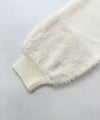 袖部分のバルーン袖やフェザーヤーン切り替え、胸元のロゴの配色とフェザーヤーンがアクセントになったニットプルオーバー。ノンウール素材のもっちりとした肌触りの良さも魅力です。