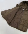 撥水性・防風性・透湿性に優れたイタリアのリモンタ社の素材を使用したフード付きダウンベスト。スポーティーさを抑えたマットな表面感、飽きのこないベーシックなデザイン。軽量で暖かく、風が入りにくい袖口内側リブ使用。裾のコードを調節してシルエットの調節が可能です。※ダブルファスナー仕様、ポケット付き。