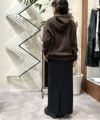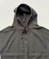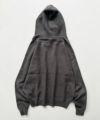 もっちりと柔らかく肌触りの良いノンウール素材を使用したフーディーニット。今年らしくフード部分の紐を太めの平紐にリニューアル。カーブを付けた前裾のラインで前後差があり、着た時の自然な丸みが魅力です。